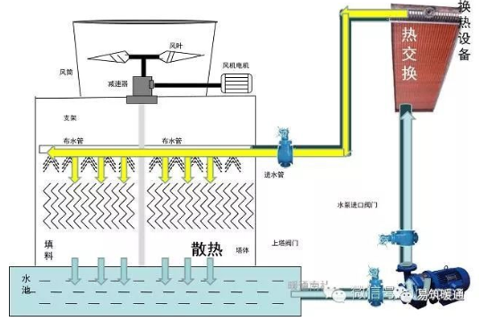 2、确定使用设备或者可以按照现场情况对噪声的要求,可以选择横流式冷却塔或者逆流式冷却塔。