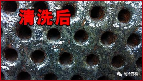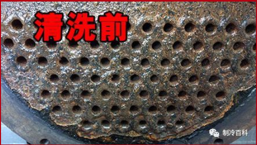 另外,也可以看冷凝器紫铜管的颜色,如果看不到紫铜管本来的颜色了,结垢已经很严重了,需及时进行清洗。