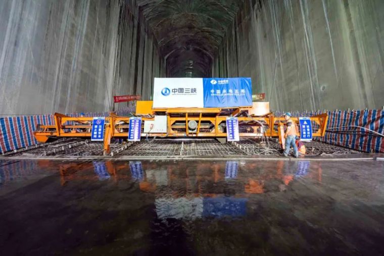 龙落尾底板的开浇,标志着水电行业一直以来未能在高流速泄洪洞全过流面浇筑常态混凝土的遗憾不复存在,填补了世界水电建设的技术空白。应用情况表明,白鹤滩水电站泄洪洞项目自行研制的成套常态混凝土施工装备安全、高效,较常规施工效率提高约20%。
