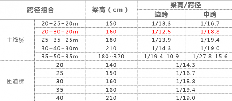 20m、25m跨径梁高最小值(建议)