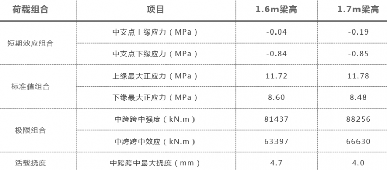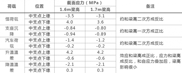 不同梁高结构单项荷载应力对比