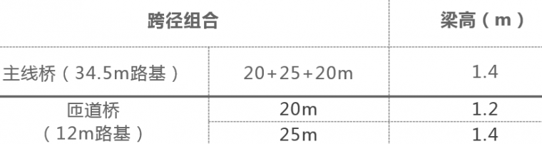 在地质条件较差时,由于受桥头填土高度的限制,桥梁上部建筑高度影响到工程规模时,为节约投资,在满足受力和刚度要求时,20m、25m跨径的箱梁的梁高可适当降低。