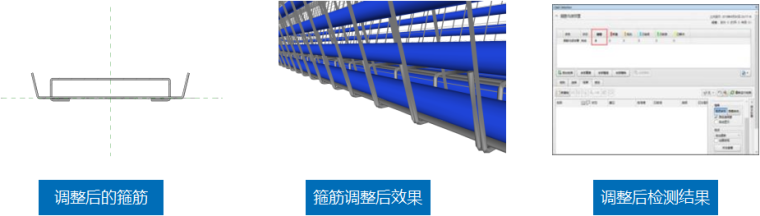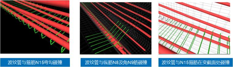 对发现的碰撞及时与设计院沟通并参照模型对钢筋位置及形状进行了调整优化,避免工人施工中进行的不合理调整及浪费材料。通过优化调整,钢筋与波纹管安装合格率100%。