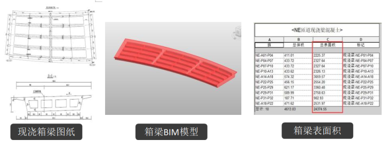 异型现浇部分桥梁施工时,通过常规方法无法准确计算出其内外表面积从而控制模板数量。
