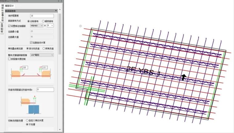 在PKPM-PC中,用户可使用【楼板配筋设计】功能直观灵活的设置叠合板的底筋、桁架、加强筋参数,并基于程序内置的智能化规则快速完成配筋设计。例如,工程师可以: