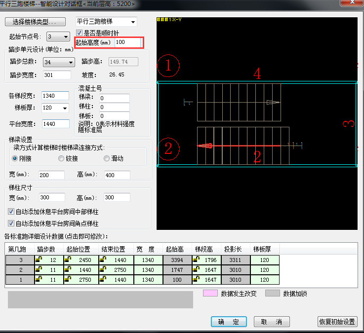 A:通过错误定位查看,发现是楼梯构件导致,则需要建模时将楼梯设置一个起始高度,如下图所示。