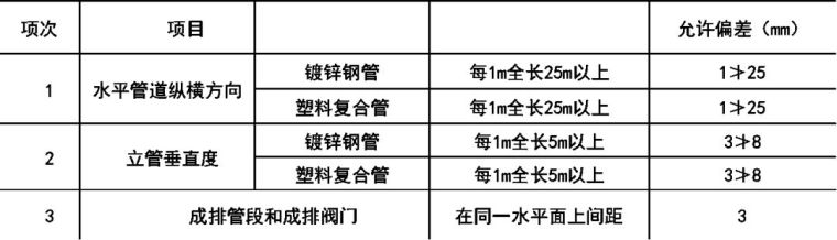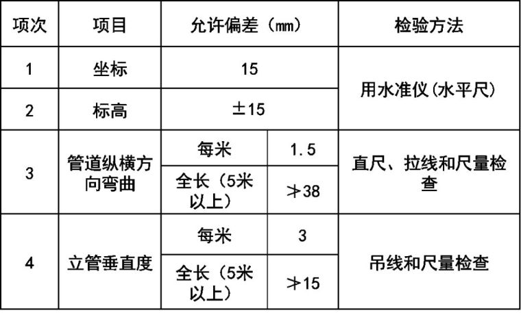 3.管道安装要求每米偏差1mm,全长偏差10mm。