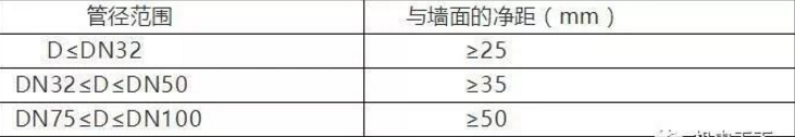 3.对于管道的外壁、法兰边缘及热绝缘层外壁等管路最突出的部位,距墙壁或柱边的净距应100mm。