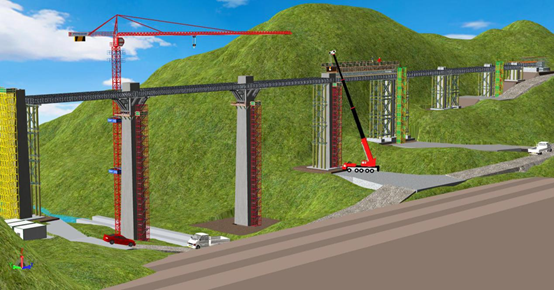 由于时间紧、地形情况复杂,为更好地向专家汇报论坛方案,并与项目人员进行交底,本项目利用品茗BIM施工策划软件进行了三维可视化模拟,对项目工艺流程、支架模板搭设、施工安全注意事项等重要环节进行了形象展示,最终顺利通过箱梁模板支架危险性较大工程施工专家评审会议。