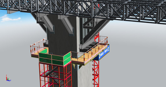 为了突出整个项目在安全设施上的投入,无论是从大局出发设置的区域通道布局,将安全通道与道路连接,保证整个施工区域安全通道畅通,还是从实用性出发设置的安全通道,保证工人高空作业的安全性,项目组都利用BIM技术将安全措施以三维形式展示出来,获得了工程施工专家评审会议专家组的一致认可。