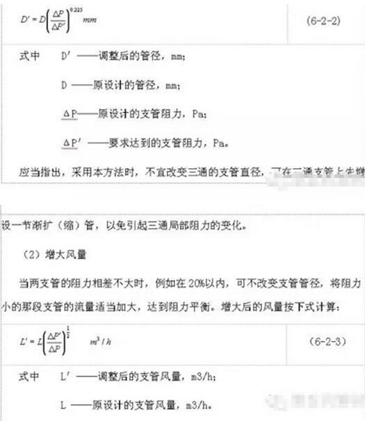 这种方法是通过改变支管管径改变支管的阻力,达到阻力平衡。调整后的管径按下式计算: