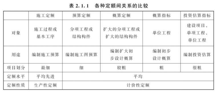 (3)概算定额。概算定额是完成单位合格扩大分项工程或扩大结构构件所需消耗的人工、材料和施工机具台班的数量及其费用标准,是一种计价性定额。概算定额是编制扩大初步设计概算、确定建设项目投资额的依据。概算定额的项目划分粗细,与扩大初步设计的深度相适应,一般是在预算定额的基础上综合扩大而成的,每一扩大分项概算定额都包含了数项预算定额。