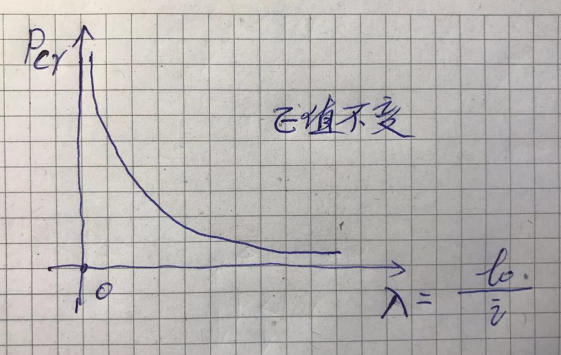 很容易理解,当长细比很小的时候,欧拉稳定应力可以无限大,就像我们压一个橡胶垫,橡胶点可以承受巨大的压力。长细比很大的时候,杆的自重就可以使其失稳,比如桌面上一张立着的薄纸的弯曲。