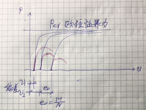 文(一)在绘制 草图时,把失稳后画成下降段了,是错误的,应为平直的。如果是完全弹性压杆,即此时的压力不能变小,否则又会弹了起来。我们实际工程中的材料总有材料的屈服问题,所以会存在上图红笔所画的那样的压力下降段,造成我对完全弹性也存在下降段的错误理解。完全弹性的杆可以理解成两个小伙子摔跤,一个摁摔倒一个后,死死摁住丝毫不敢放松,除非那个被压的人自己泄了劲就好像材料发生了塑性时一样。