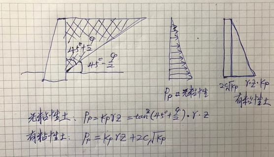 被动土压力也分两部分,摩擦力产生的和黏聚力产生的。
