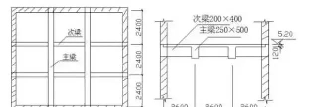 [例10-18]某现浇钢筋混凝土有梁板,如图所示,胶合板模板,钢支撑,计算有梁板模板工程量,确定定额项目。