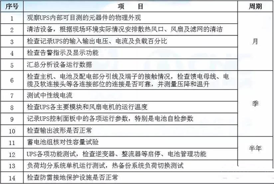 经常检查设备的工作和故障指示是否正常。定期查看UPS内部的元器件的外观,发现异常及时处理。