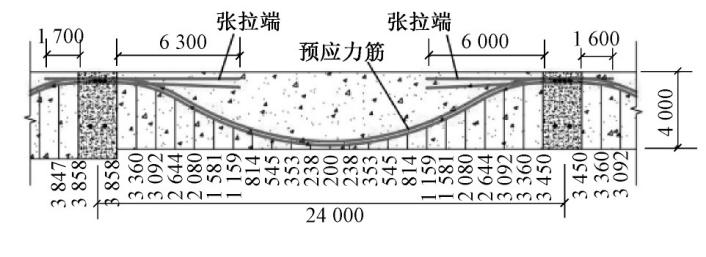 6)在结构平面布置图中,预应力筋在梁中的布设、节点区的交叉方式及张拉端的排列应在施工前进行仔细分析并放样。
