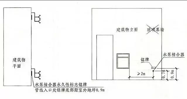 (6)水泵接合器处应设置永久性标志铭牌,并应标明供水系统、供水范围和额定压力。