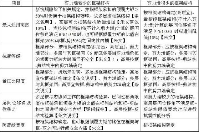 1、多遇地震或风荷载作用下,纯框架结构的弹性层间位移角不能满足1/550的规范要求时,通过布置少量剪力墙加大结构刚度;