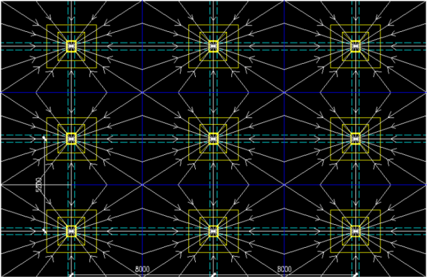 关于增加板式楼盖的延性及防连续倒塌的设想。可采用明梁+柱帽的结构布置方案3(仍属板式楼盖受力特性),此结构方案的导荷方式为:大部分荷载直接通过柱帽传给柱,有一小部分荷载通过梁再传柱。优点是,通过增设明梁,楼盖的延性及防连续倒塌会很好多;缺点是,增设明梁以后导荷路径会更为复杂,有限元算法的导荷跟实际导荷是否一致很关键。