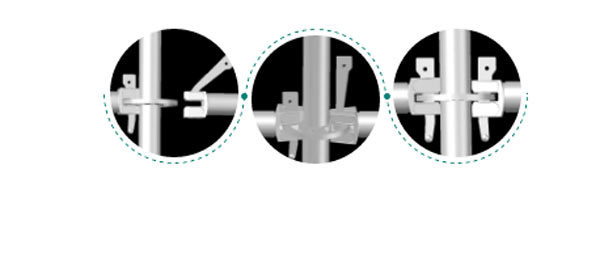 4、检查支撑架竖向斜杆的销板是否打紧,是否平行与立杆;水平杆的销板是否垂直于水平杆;