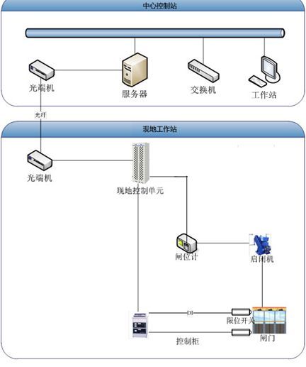 水库闸门自动化监控系统由中心控制站、现地工作站组成。
