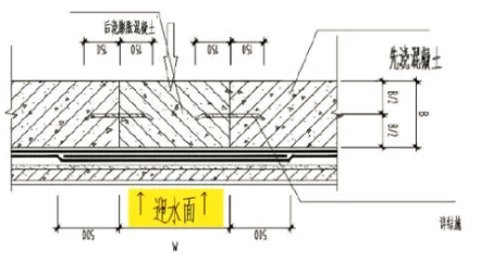 之所以要指明迎水面有二个原因:一是因为规范规定:一级防水时施工缝一般除了止水带还要采用另外一种防水措施的,而且有些防水措施是要做在迎水面的,所以要指出迎水面的方向。二是凹口朝向对于底板、顶板混凝土浇筑质量有很大影响。