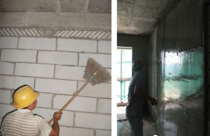一般在抹灰前一天,用水管或喷壶顺墙自上而下浇水湿润。不同的墙体,不同的环境需要不同的浇水量。浇水要分次进行,最终以墙体既湿润又不泌水为宜。