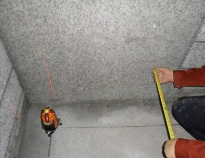 9 现场采用激光扫平仪测量绘制墙面、天花、门窗洞口收边等控制线,贴饼也必须采用激光贴饼工艺。