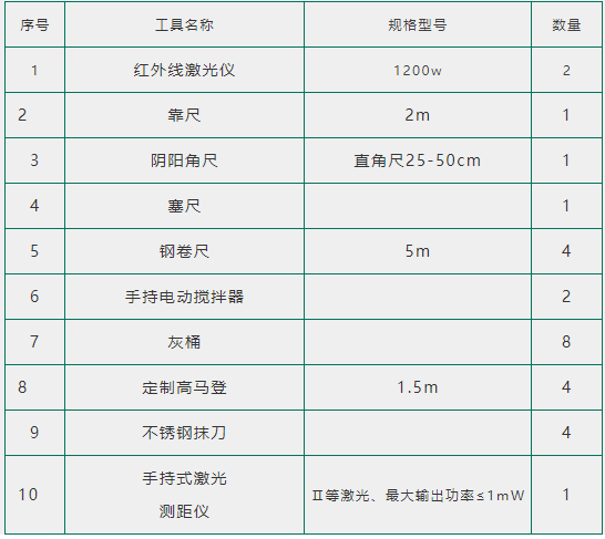 5.4.3 测量工具:5米钢卷尺、激光扫平议