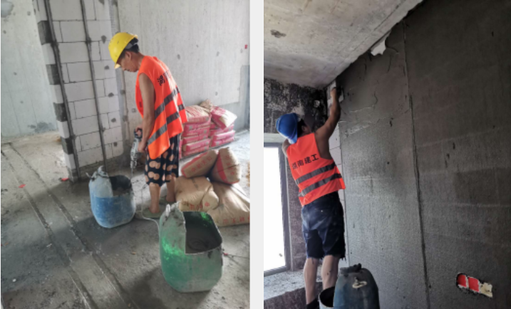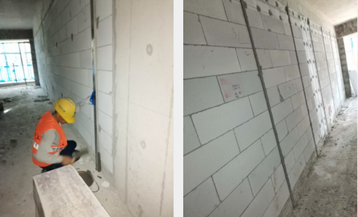 (1)加气块基层处理:应清除表面杂物,残留灰浆、尘土等。
