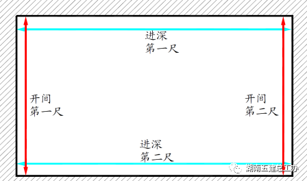 (2)同一实测区内按开间(进深)方向测量墙体两端的距离,各得到两个实测值,比较两个实测值之间的偏差。