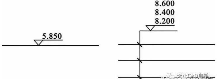 3、标高按标注位置分为:顶标高、中心标高、底标高;