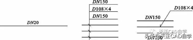 管径应以mm为单位。水煤气输送钢管(镀锌或非镀锌)、铸铁管等管材,管径宜以公称直径DN表示(如DN15、DN50);无缝钢管、螺旋、铜管、不锈钢管等管材,管径宜以外径D壁厚表示(如D1084、D1594.5等);钢筋混凝土(或混凝土)管、陶土管、耐酸陶瓷管、缸瓦管等管材,管径宜以内径d表示(如d230、d380等);塑料管材,管径宜按产品标准的方法表示。当设计均用公称直径DN表示管径时,应用公称直径DN与相应产品规格对照表。