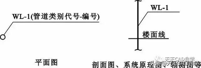 (3) 系统图上对各楼层标高都有注明,识读时可据此分清管路是属于哪一层的。
