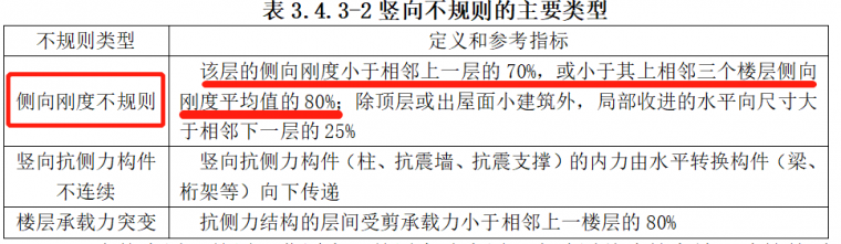 图11 抗规对侧向刚度不规则时楼层刚度比的控制