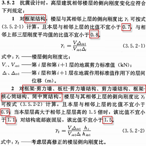 a. 抗规对楼层剪力/层间位移计算的刚度比控制要求。