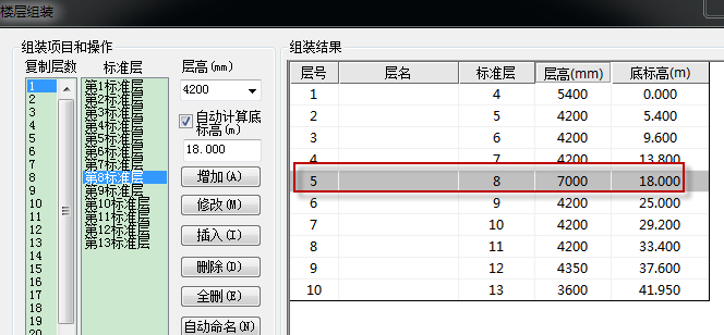 图18 该结构中的各层层高