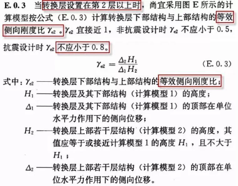 (1)规范对高位转换结构楼层剪力与位移的刚度比的相关要求。