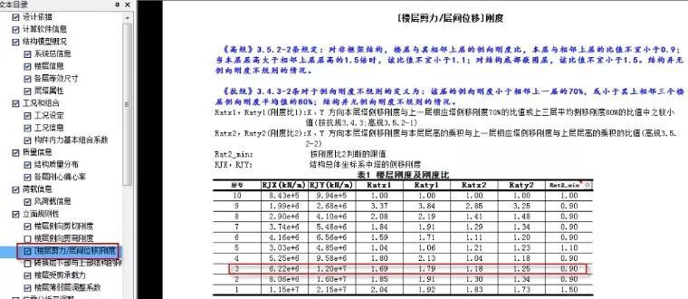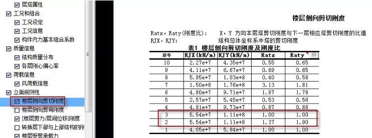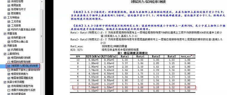 该刚度比的控制计算是要按照图33输出的层剪力/层间位移计算的刚度来控制刚度比,该要求的指标控制需要设计师进行手工校核。