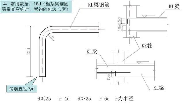 1)框架梁锚固端带直弯钩时,弯钩的包边长度。