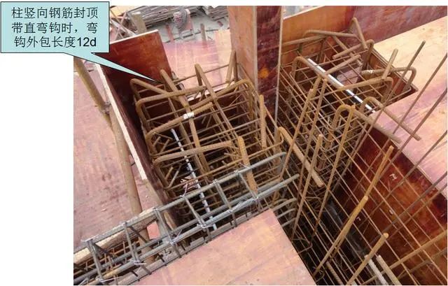 1)框架柱封顶带直弯钩时,弯钩外包长度。
