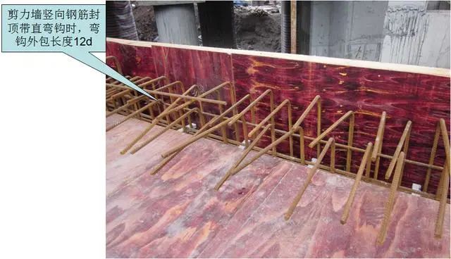 2)剪力墙竖向钢筋封顶带直弯钩时,弯钩外包长度。