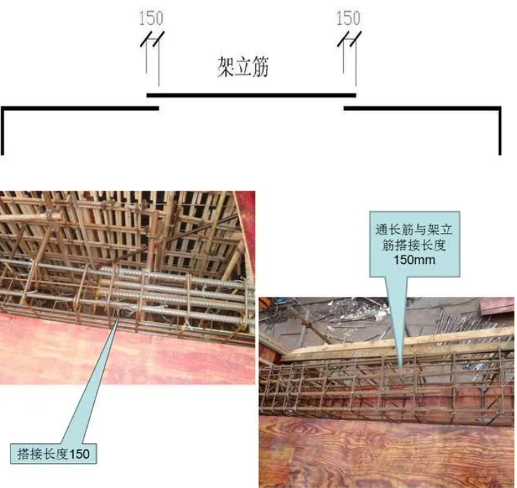 (7)150:构造钢筋(架立筋)与主筋的搭接长度。