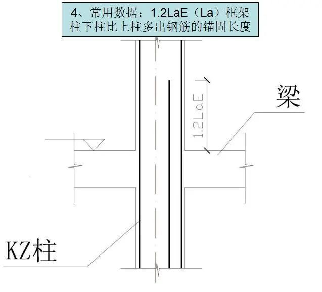 4)框架柱下柱比上柱多出钢筋的锚固长度。