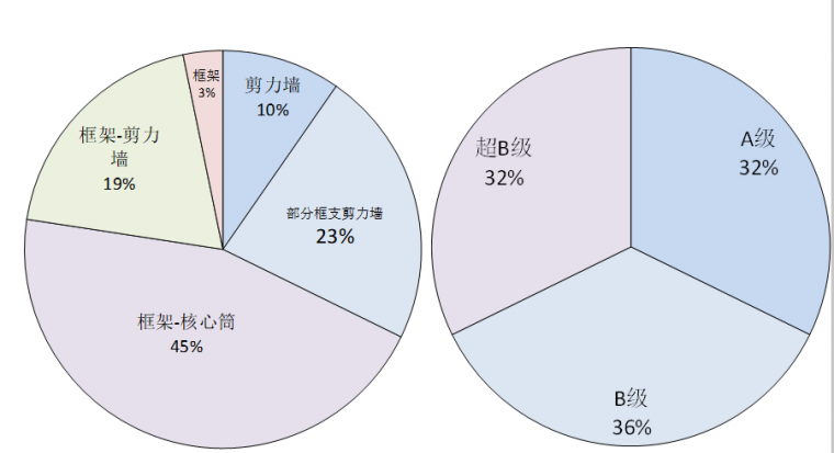 图1 不同结构体系所占比例 图2 不同高度类别所占比例