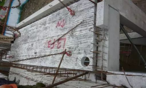 2.2吊装预制叠合梁前梁底标高、梁边线控制线在校正完的墙体上用墨斗线弹出。