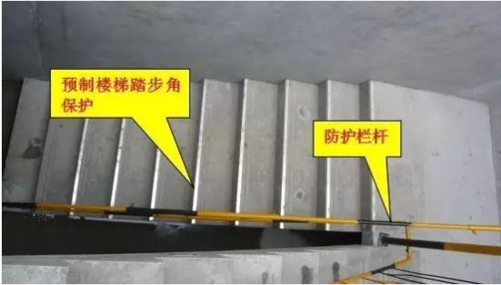3.2构件安装完成后楼梯踏步口宜采用木条或黏贴铝角条保护。