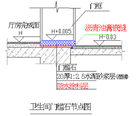 2、卫生间门框、门套要安装在门槛石之上,门槛石缝隙用沥青油膏嵌缝。